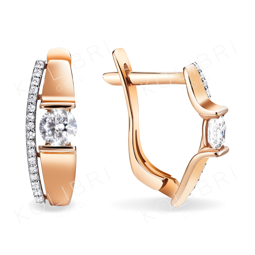 Золотые серьги с фианитом ВЫСТАВКА 4191