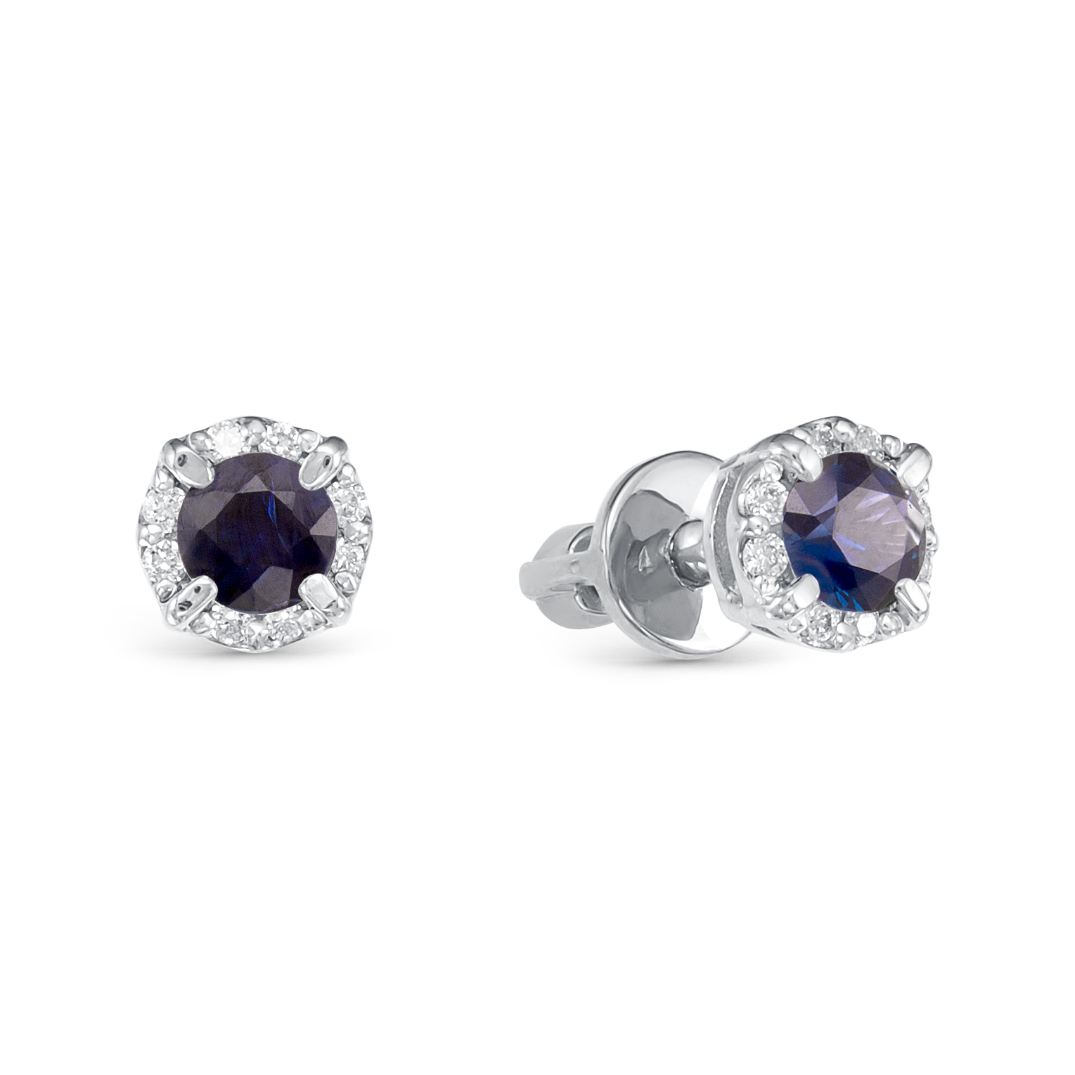 Серьги пусеты-гвоздики из белого золота с бриллиантом и сапфиром VESNA 4409-251-03-00
