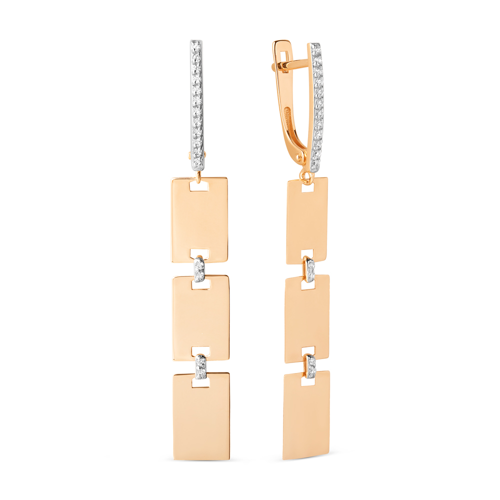Золотые длинные серьги с фианитом ДИНАСТИЯ 500152-1102