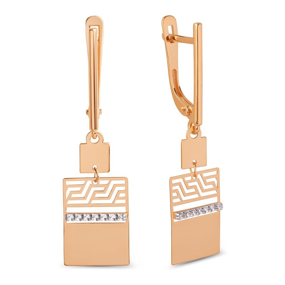Золотые длинные серьги с фианитом ДИНАСТИЯ 500732-1102