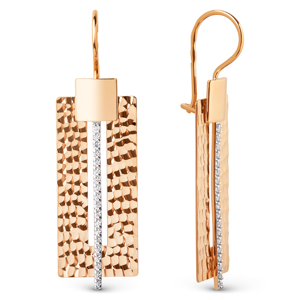 Золотые длинные серьги с фианитом ДИНАСТИЯ 500792-1112