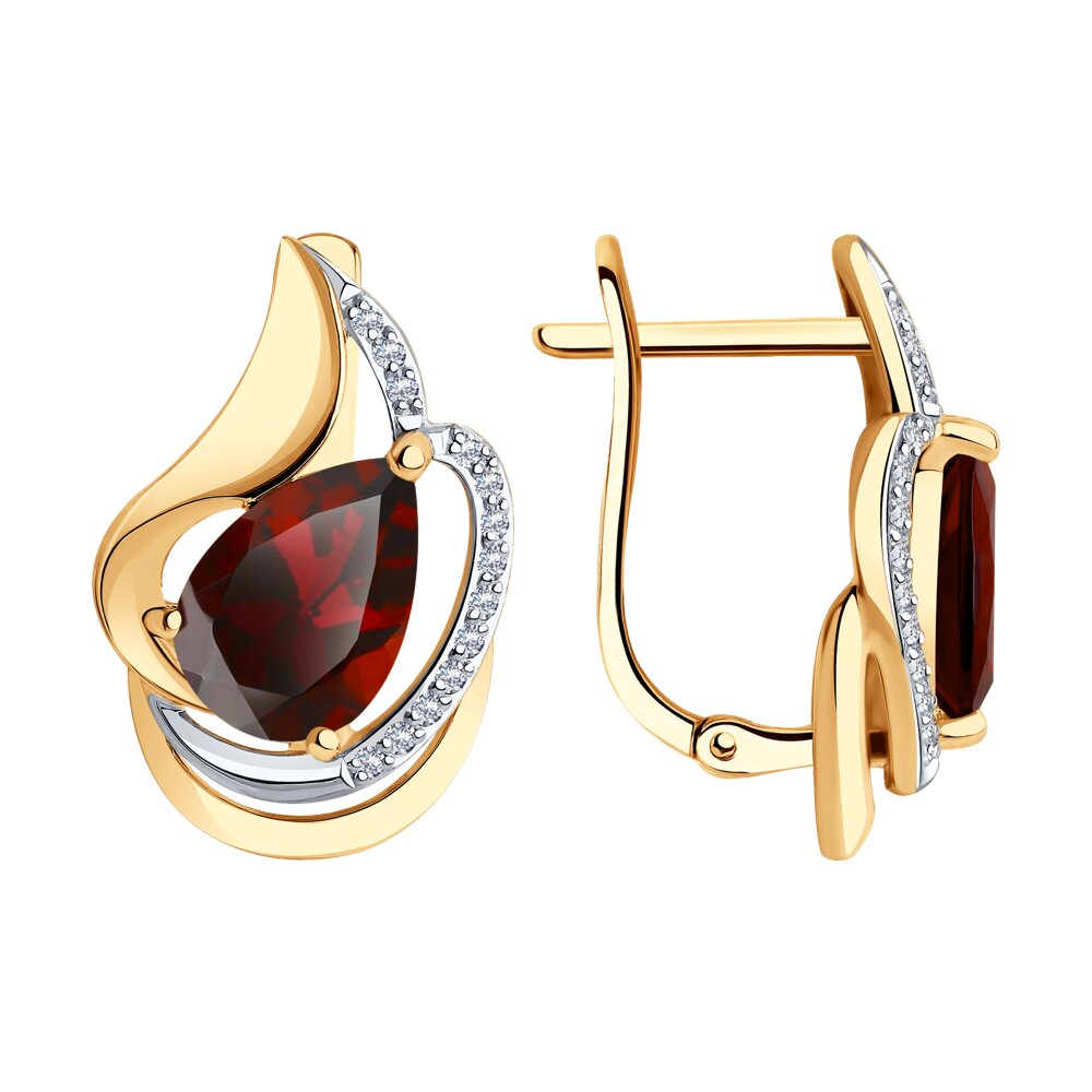 Золотые серьги с гранатом и фианитом SOKOLOV 51-320-00921-2