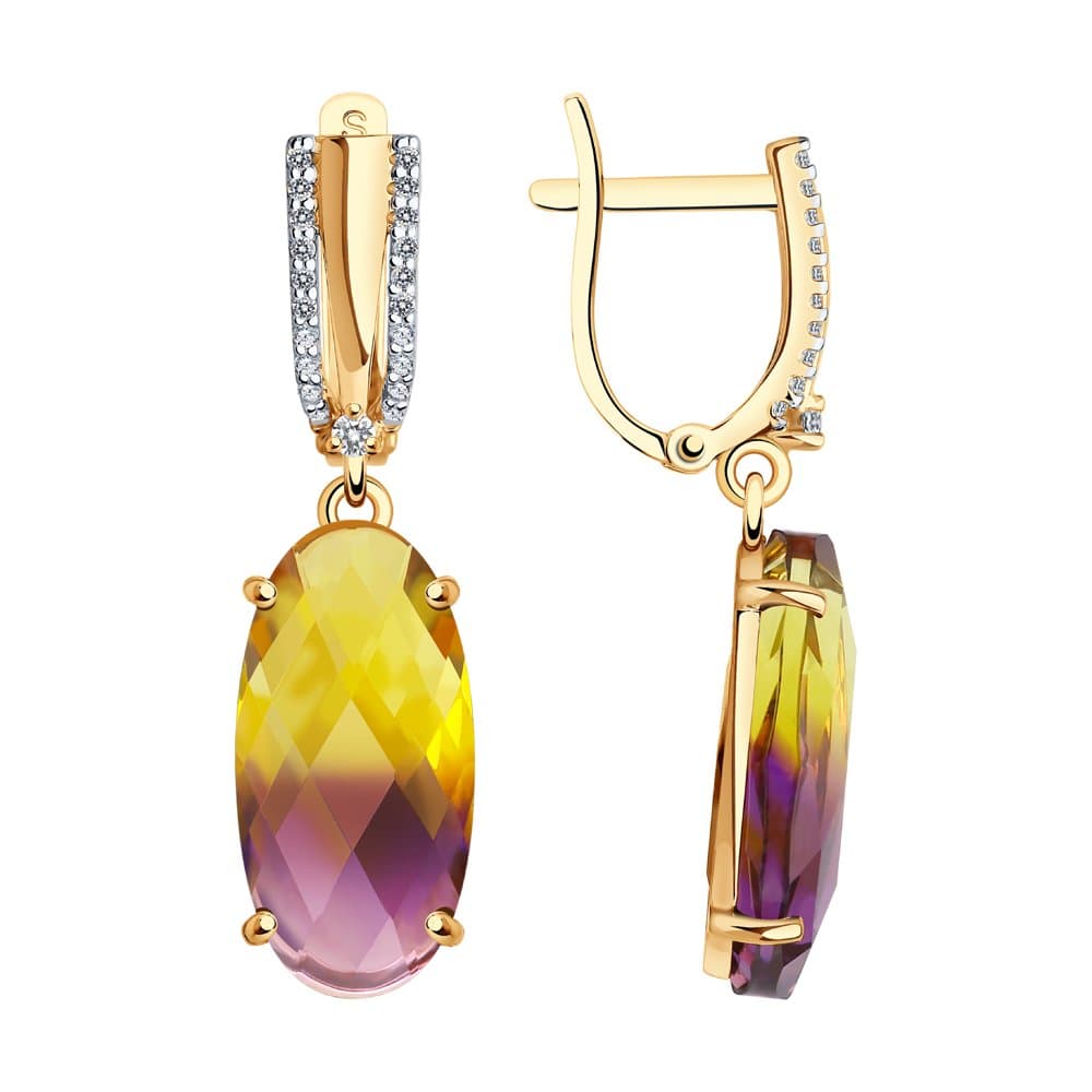 Золотые серьги с аметрином и фианитом SOKOLOV 724210