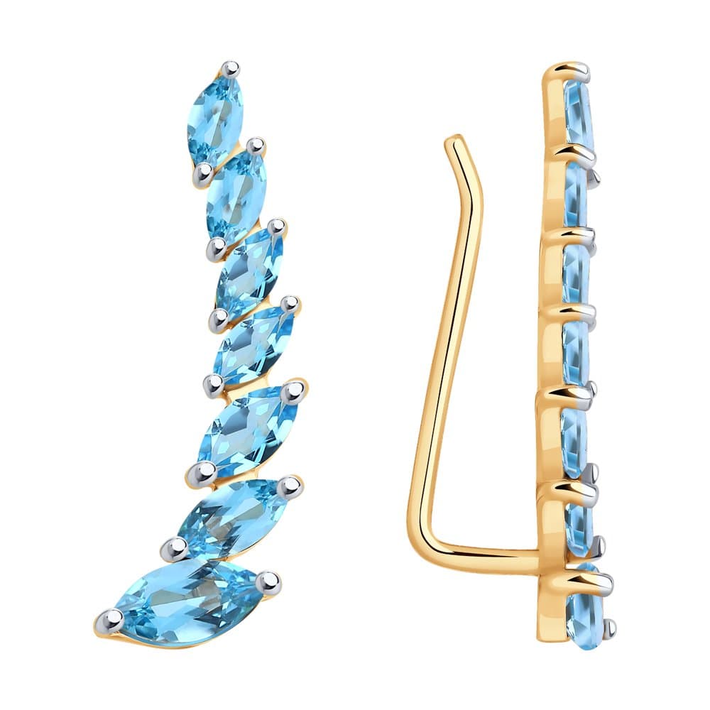 Золотые серьги зажимы с топазом SOKOLOV 724231