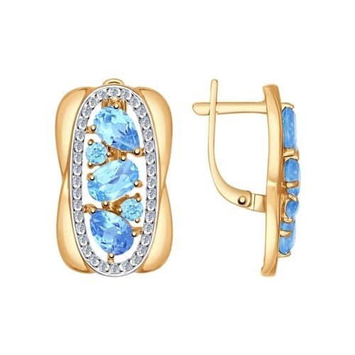 Золотые серьги с топазом и фианитом SOKOLOV 724693