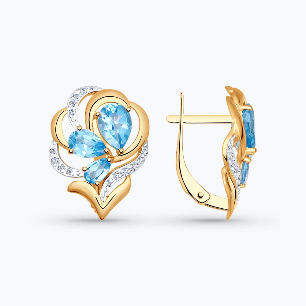 Золотые серьги с топазом и фианитом SOKOLOV 725034