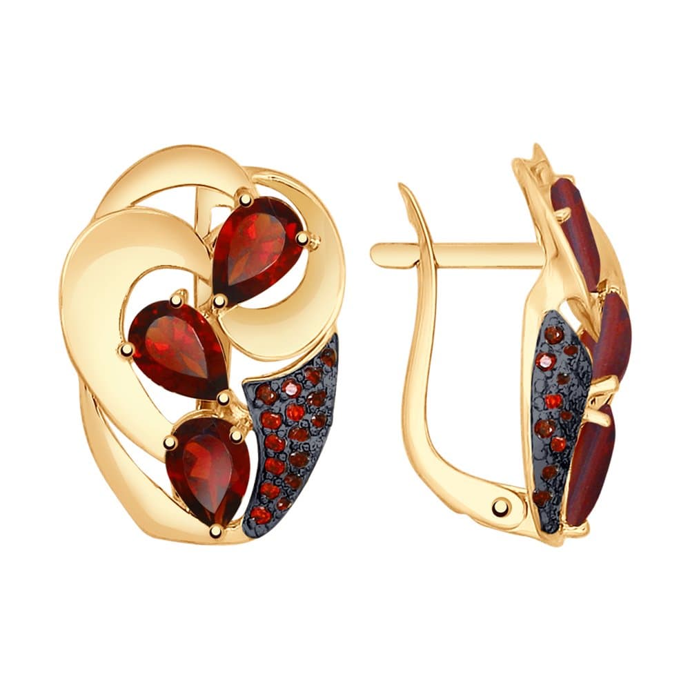 Золотые серьги с гранатом и фианитом SOKOLOV 725076