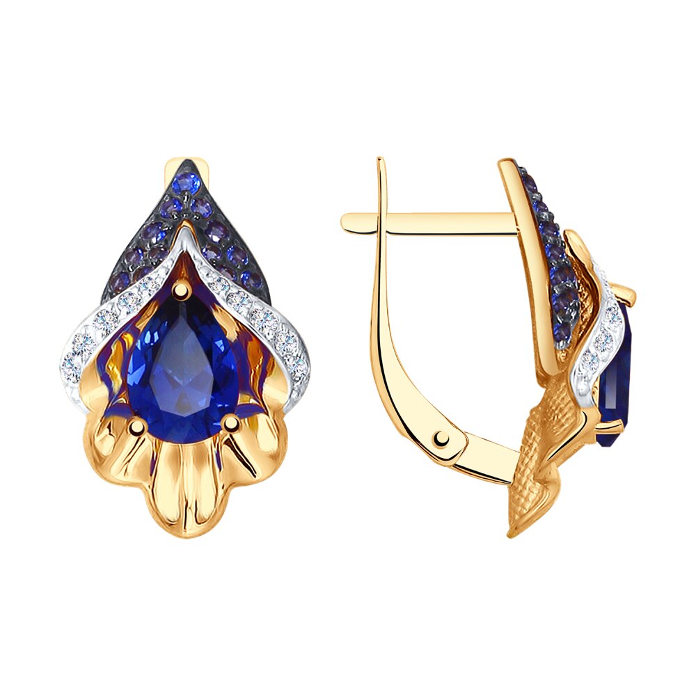 Золотые серьги с сапфиром гидротермальным и фианитом SOKOLOV 725101