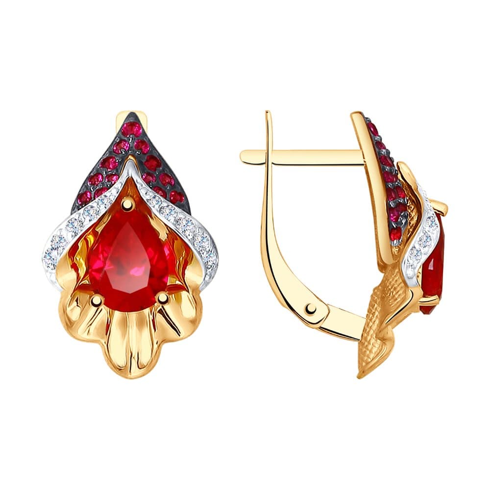 Золотые серьги с рубиновым корундом SOKOLOV 725102