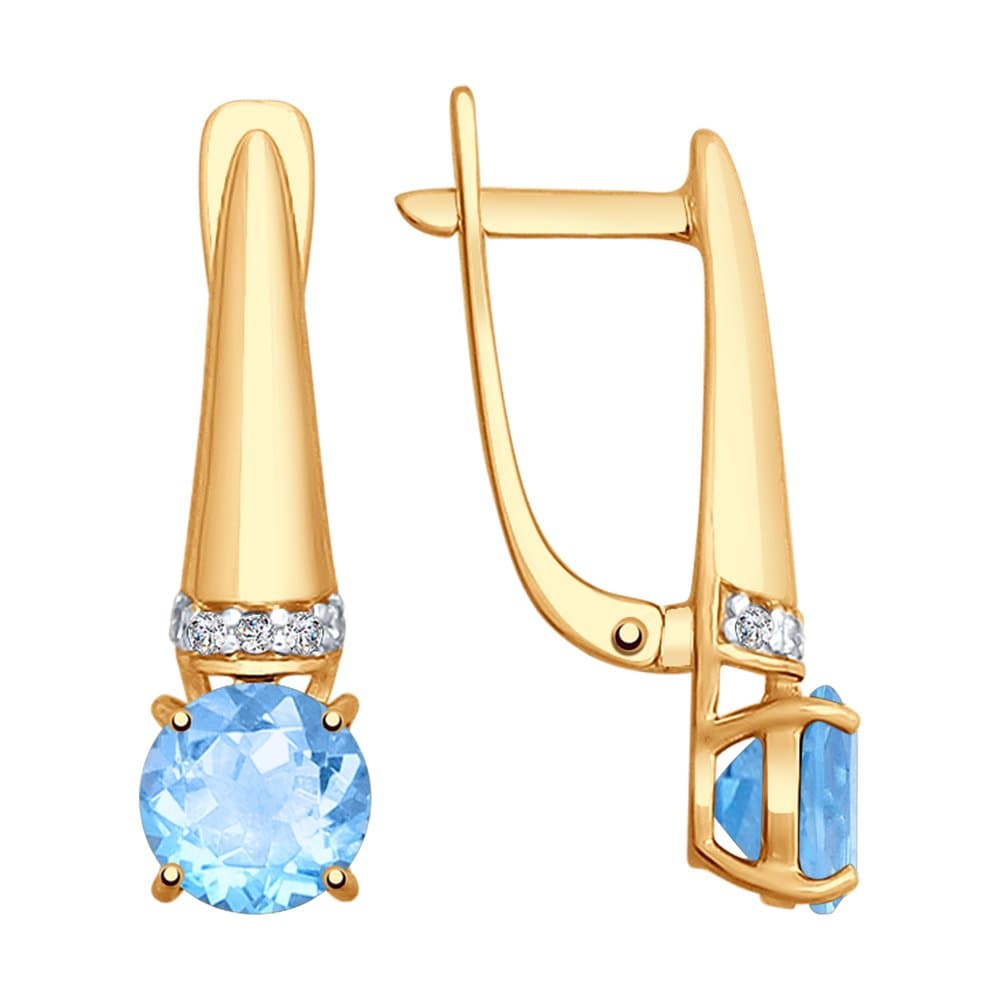 Золотые серьги с топазом и фианитом SOKOLOV 725264