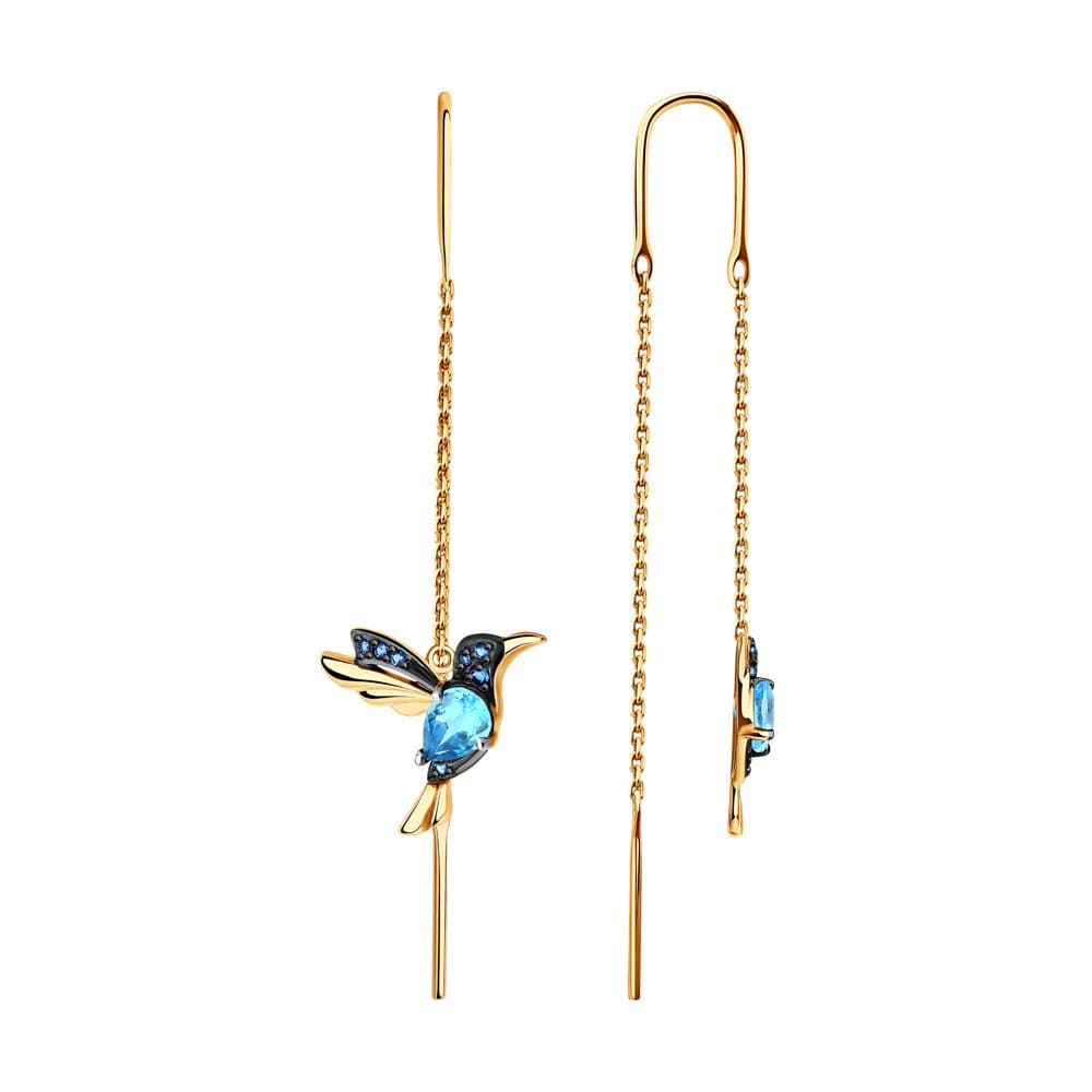 Золотые серьги-цепочки с топазом и фианитом SOKOLOV 725373