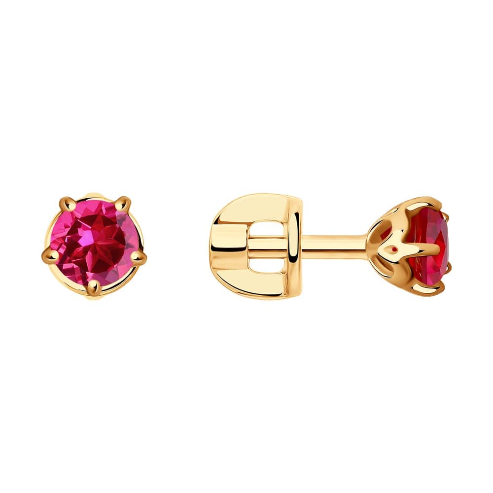 Золотые серьги пусеты-гвоздики с рубиновым корундом SOKOLOV 725454