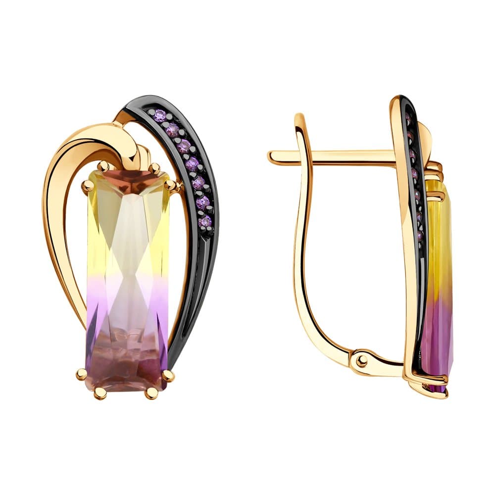 Золотые серьги с аметрином и фианитом SOKOLOV 726079