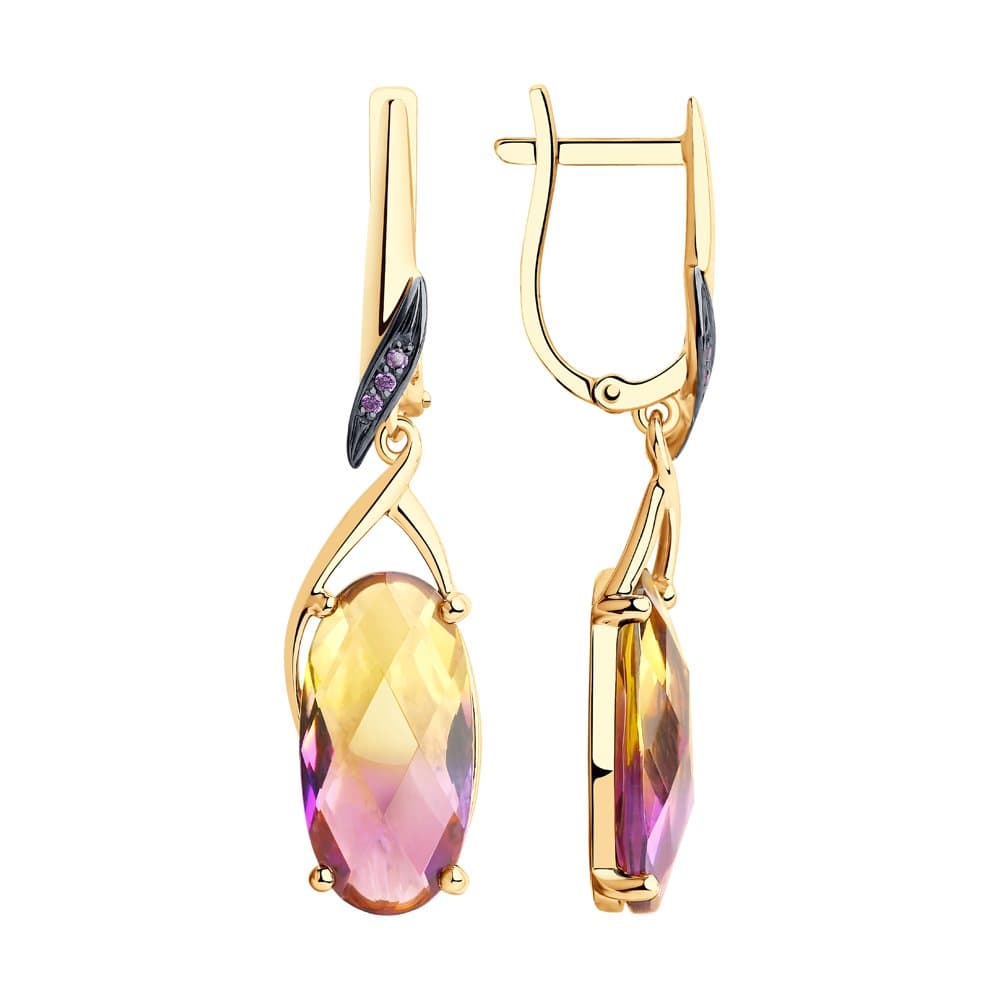 Золотые серьги с аметрином и фианитом SOKOLOV 726090