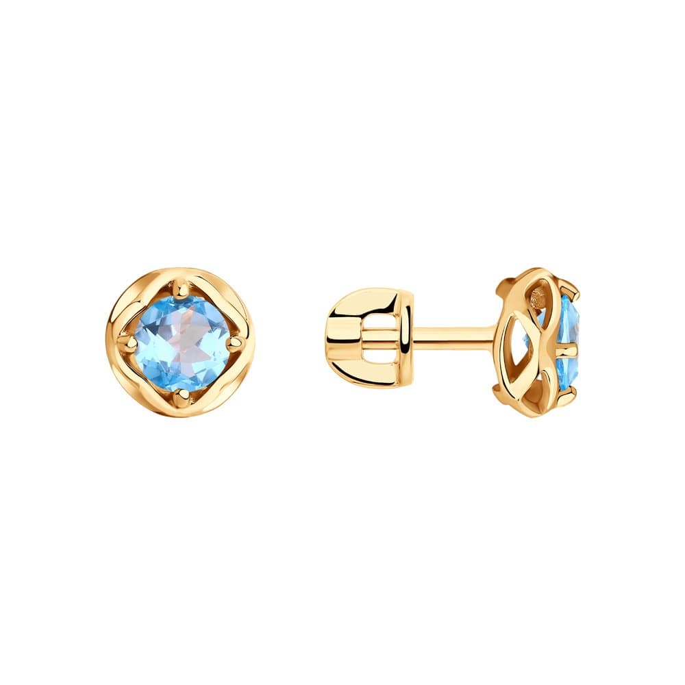 Золотые серьги пусеты-гвоздики с топазом SOKOLOV 726130
