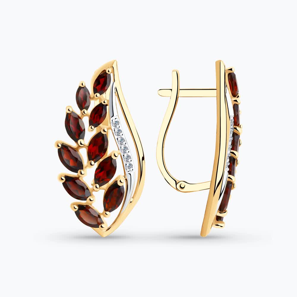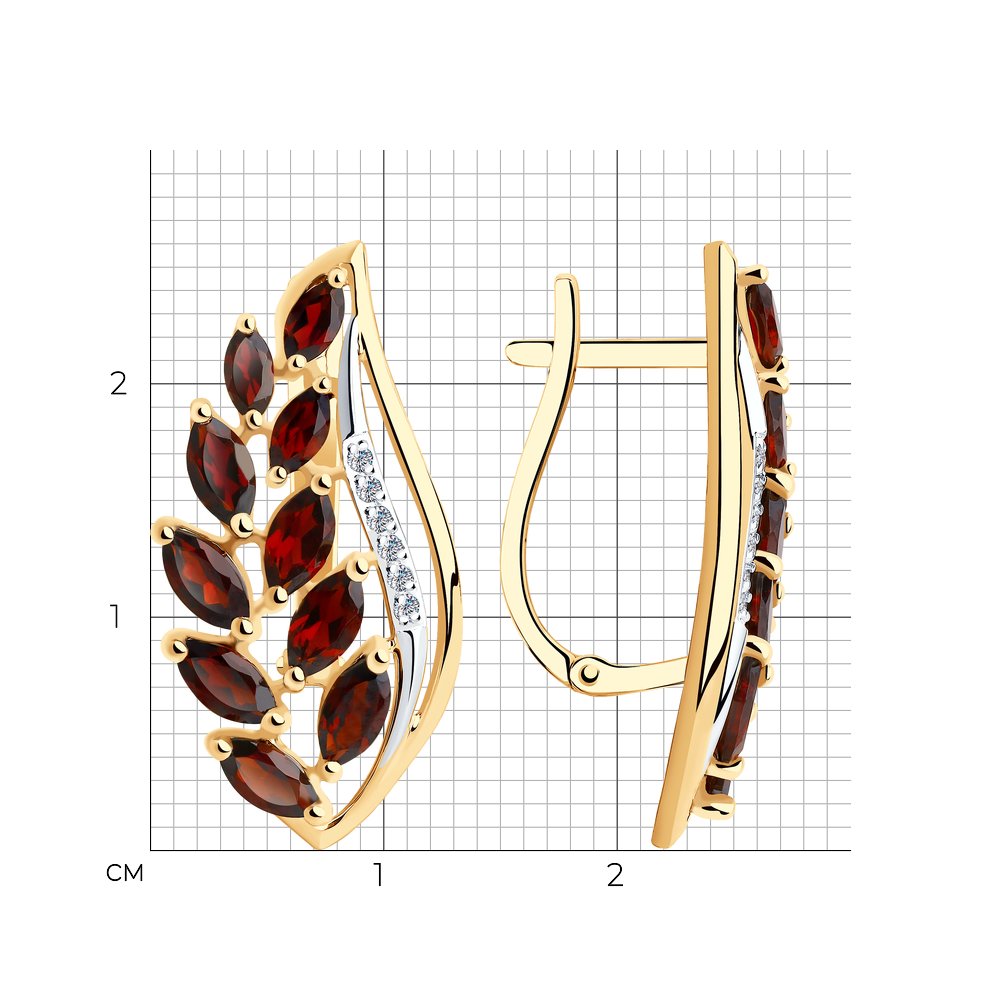 Золотые серьги с гранатом и фианитом SOKOLOV 727040