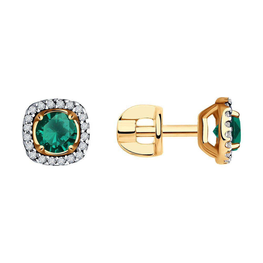 Золотые серьги с изумрудом гидротермальным и фианитом SOKOLOV 727266
