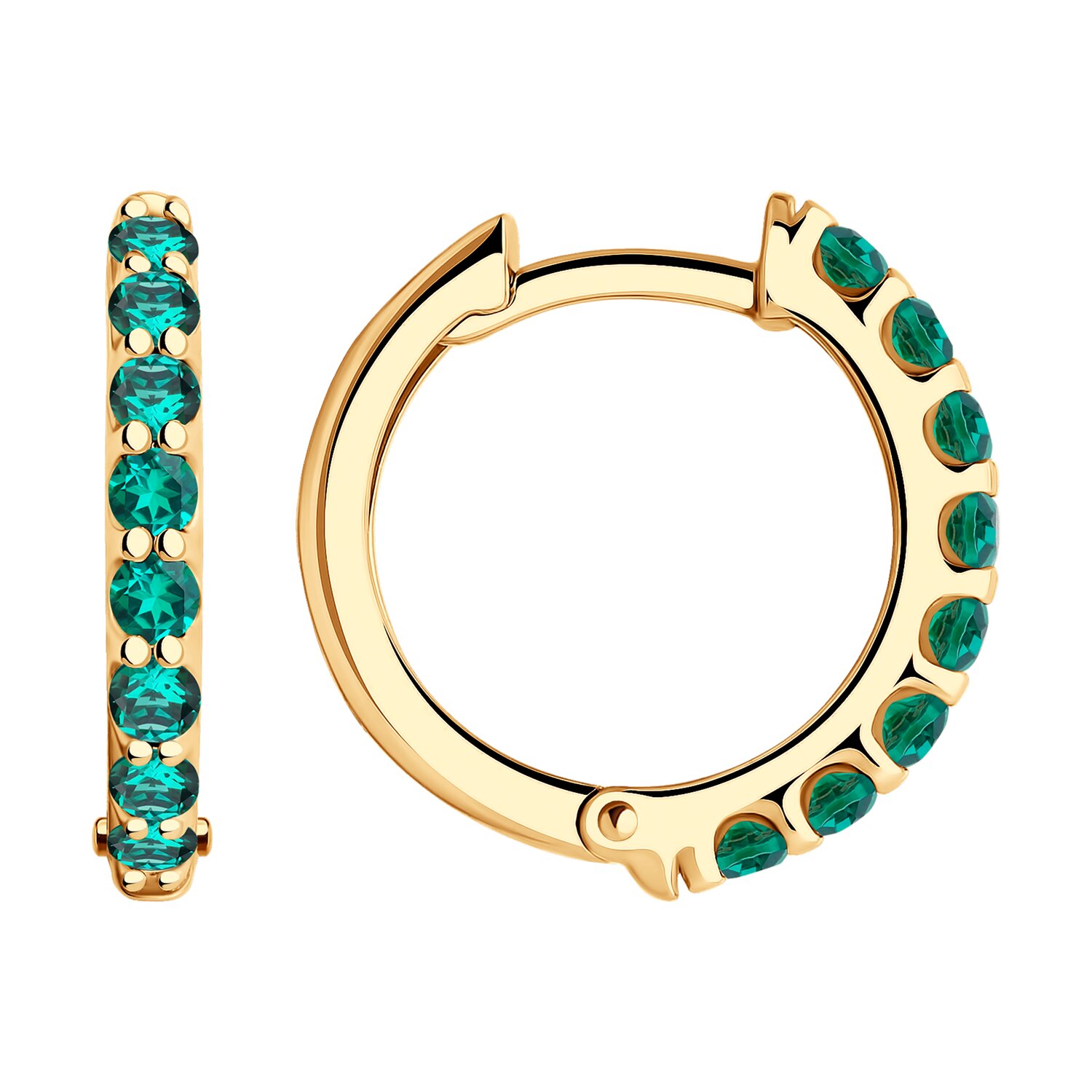Золотые серьги с изумрудом гидротермальным SOKOLOV 728661