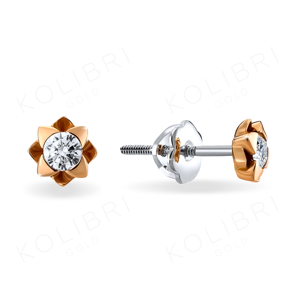 Золотые серьги пусеты-гвоздики с бриллиантом БРИАНТ ER03092D