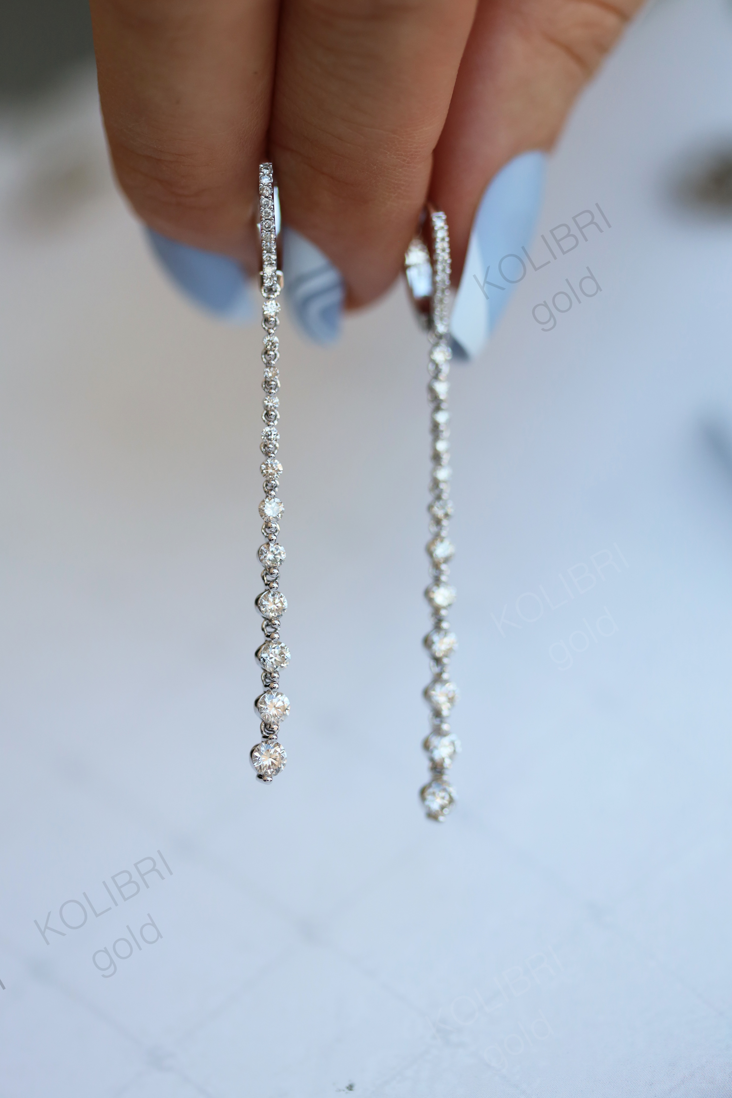 Длинные серьги из белого золота с бриллиантом БРИАНТ EW03865D
