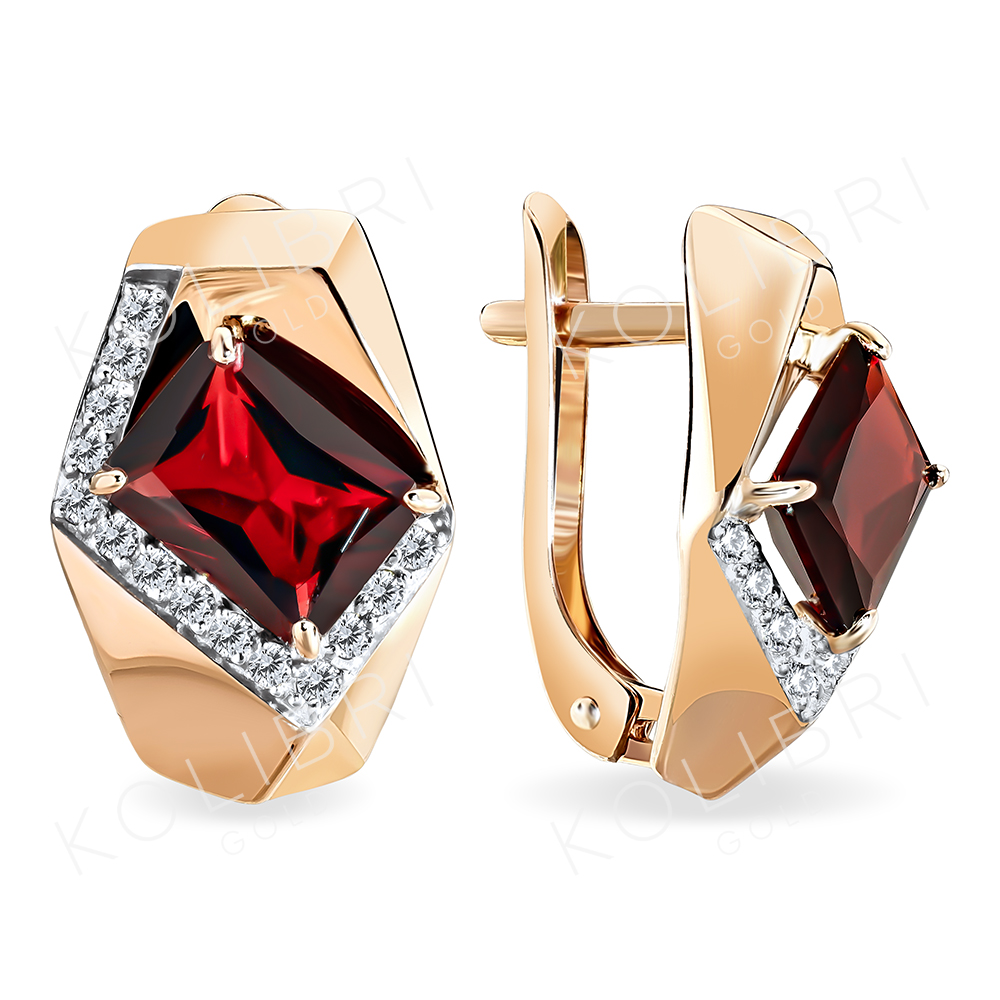 Золотые серьги с гранатом и фианитом АЛЕКСАНДРА кл2970а-2-01