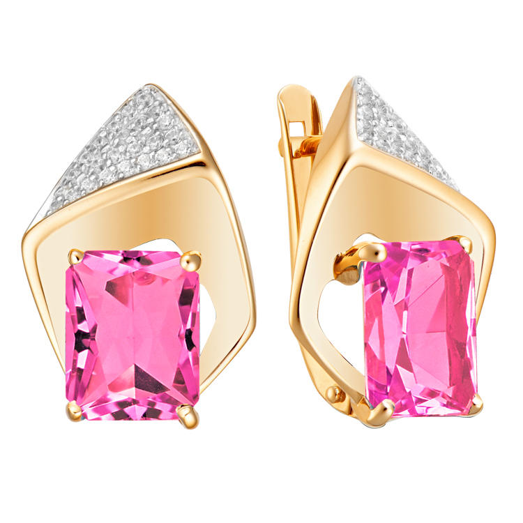 Золотые серьги с рубиновым корундом и фианитом АЛЕКСАНДРА кл3579а-30-01