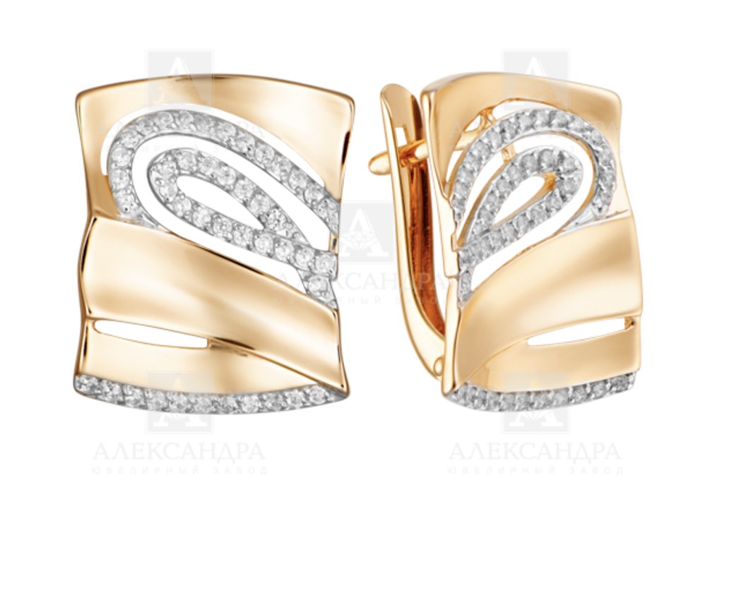 Золотые серьги с фианитом АЛЕКСАНДРА кл3630а