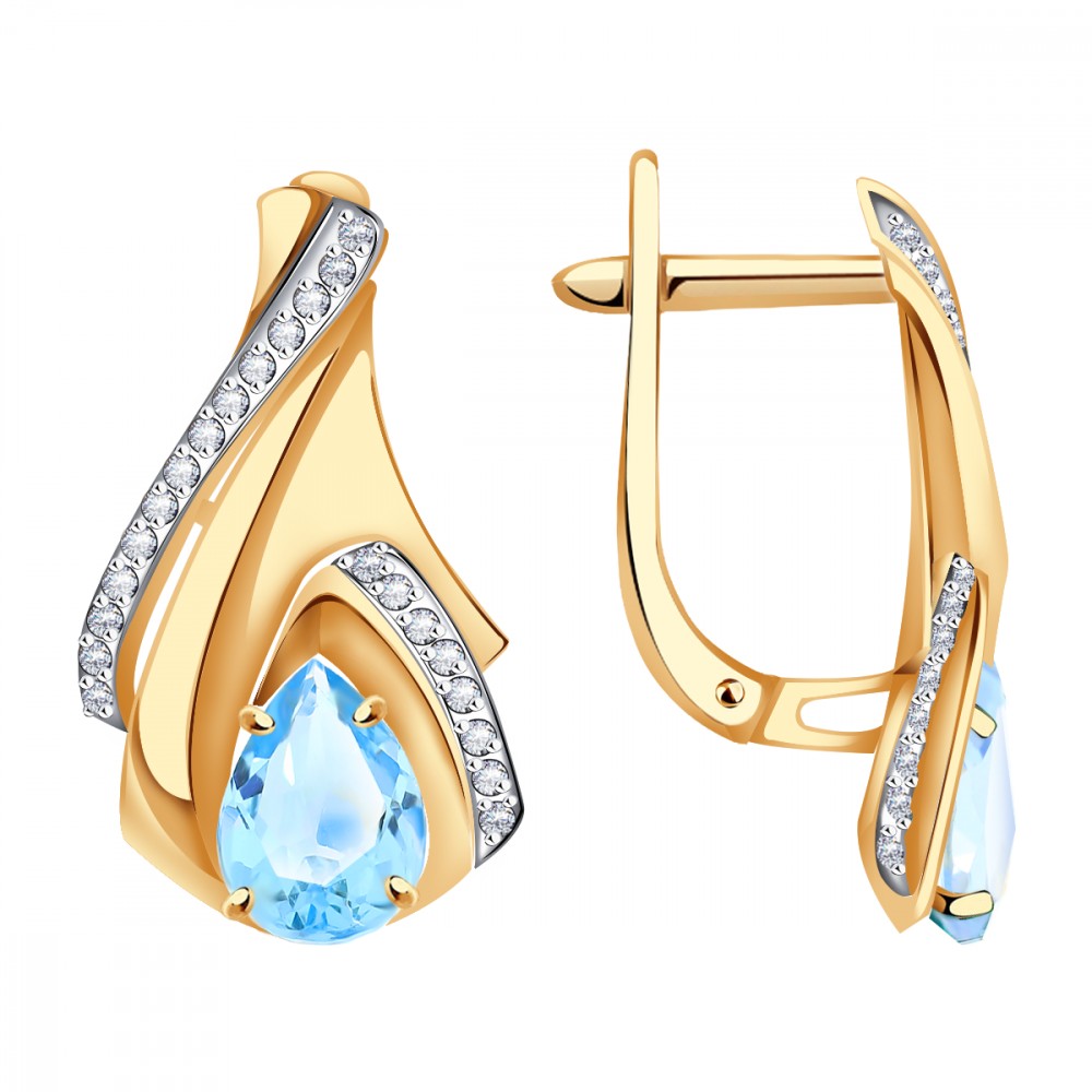 Золотые серьги с топазом и фианитом АЛЕКСАНДРА кл3749а-78-01