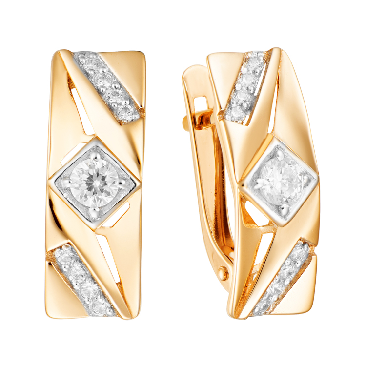 Золотые серьги с фианитом АЛЕКСАНДРА кл3769а