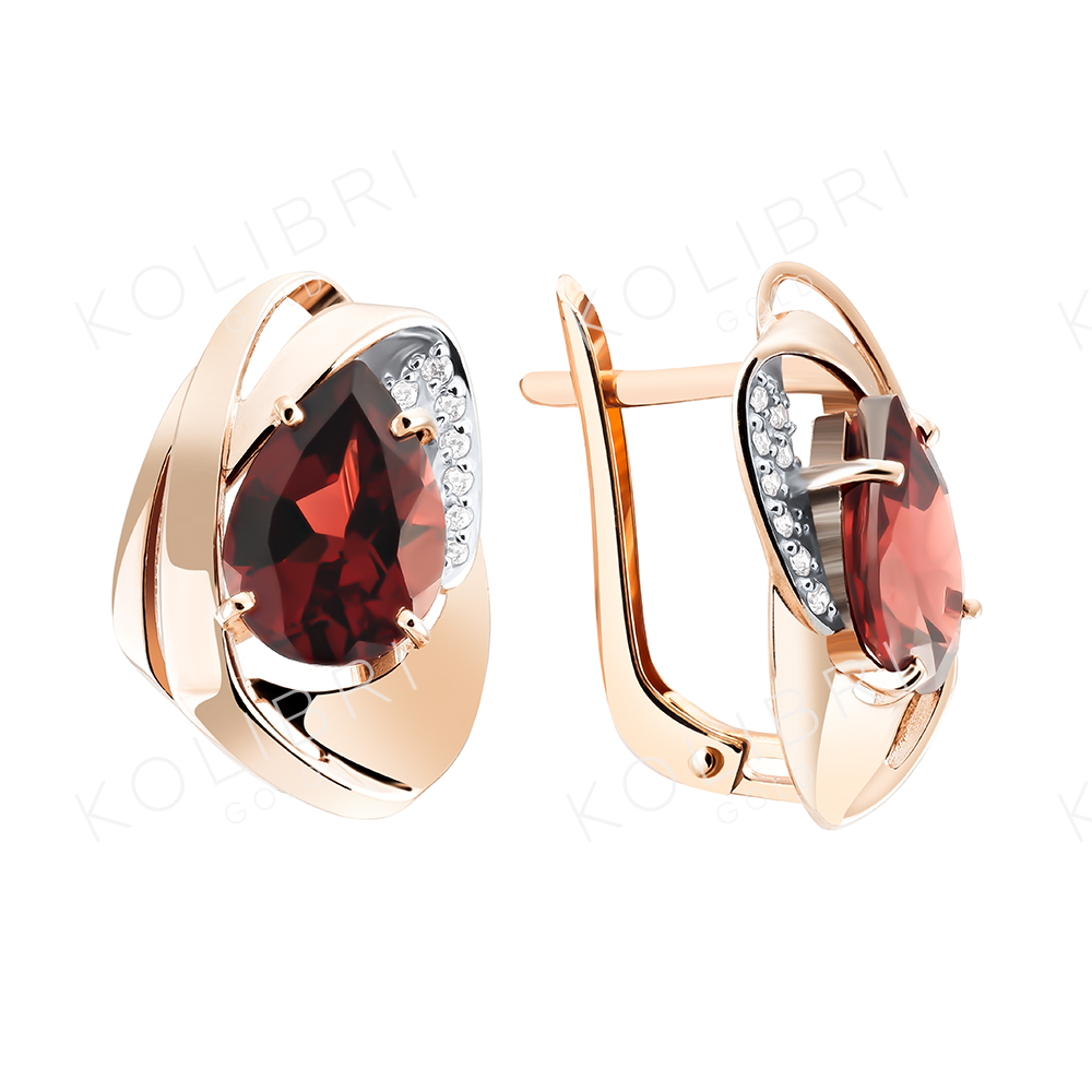 Золотые серьги с гранатом и фианитом АЛЕКСАНДРА кл3936а-2-01