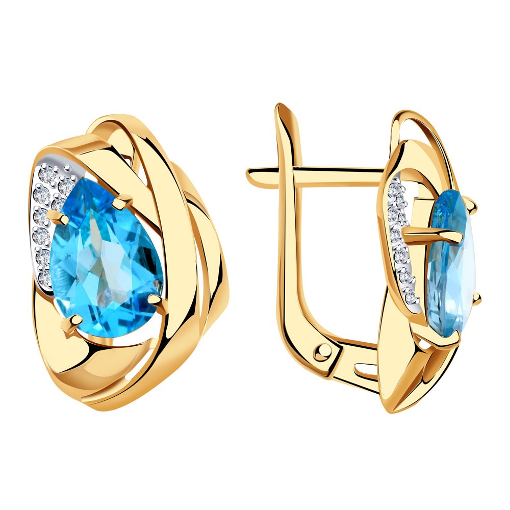 Золотые серьги с топазом и фианитом АЛЕКСАНДРА кл3936а-78-01