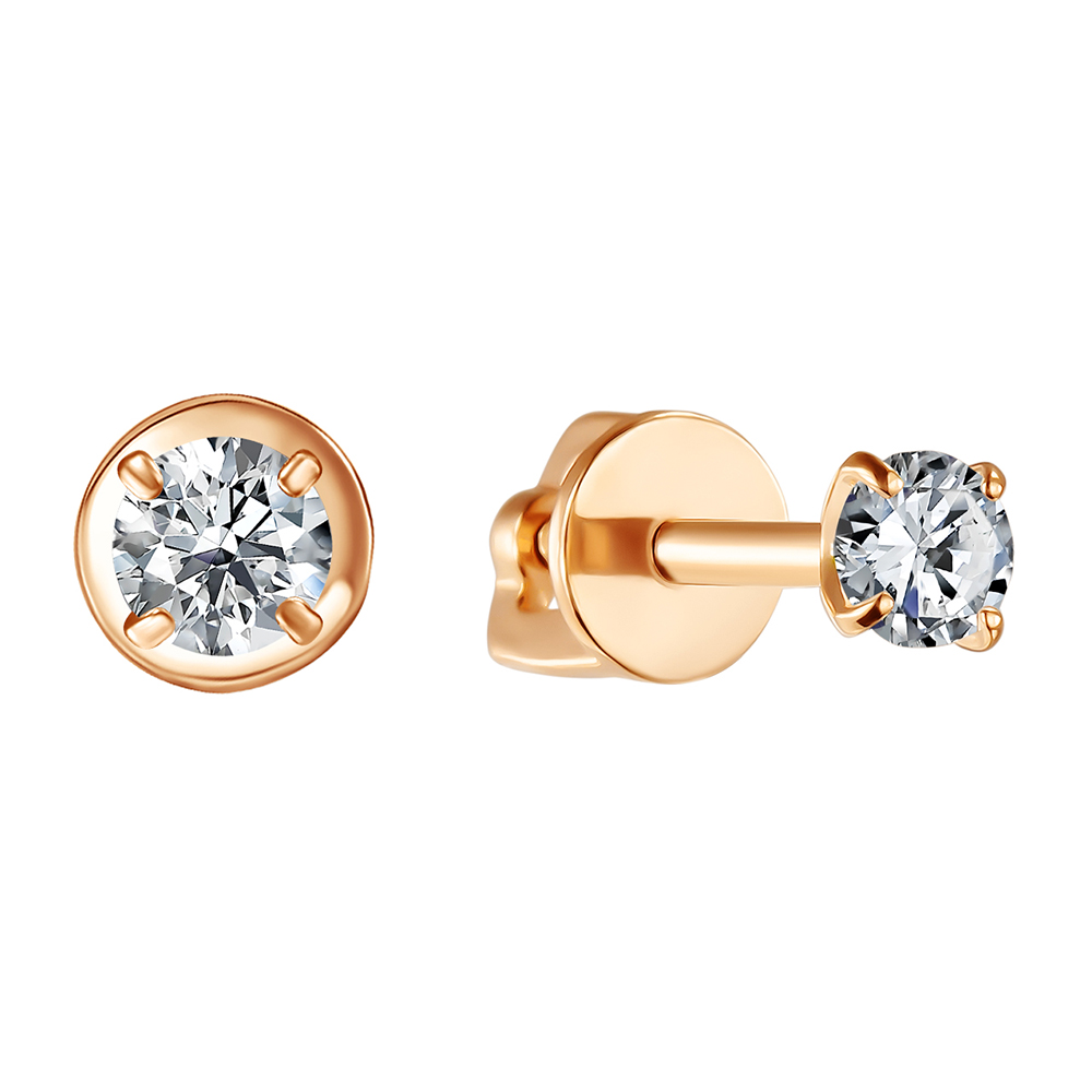 Золотые серьги пусеты-гвоздики с фианитом ГОЛДЕН ГЛОБ ПУСл01-14_бцФ