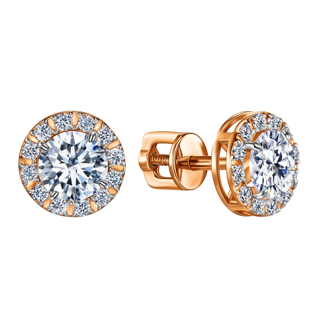 Золотые серьги пусеты-гвоздики с фианитом ГОЛДЕН ГЛОБ ПУСл51_пара_бцФ