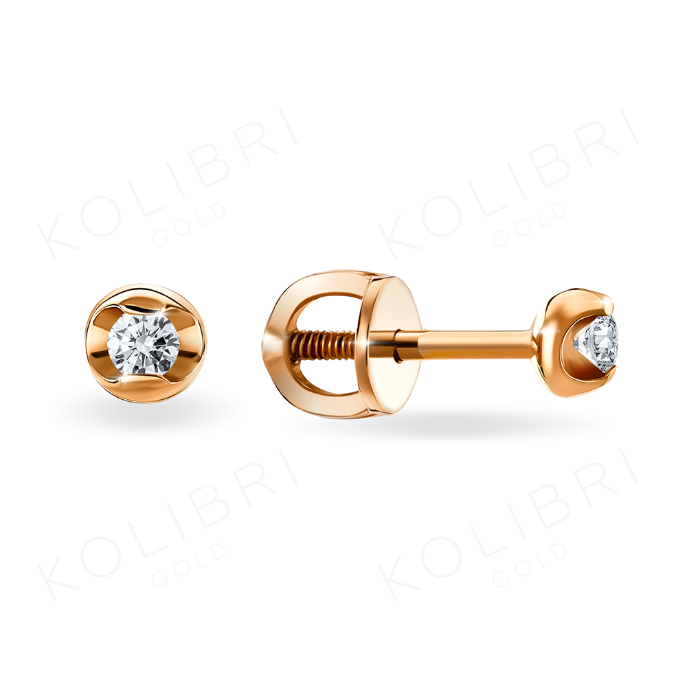 Золотые серьги пусеты-гвоздики с бриллиантом ЕФРЕМОВ С1012814