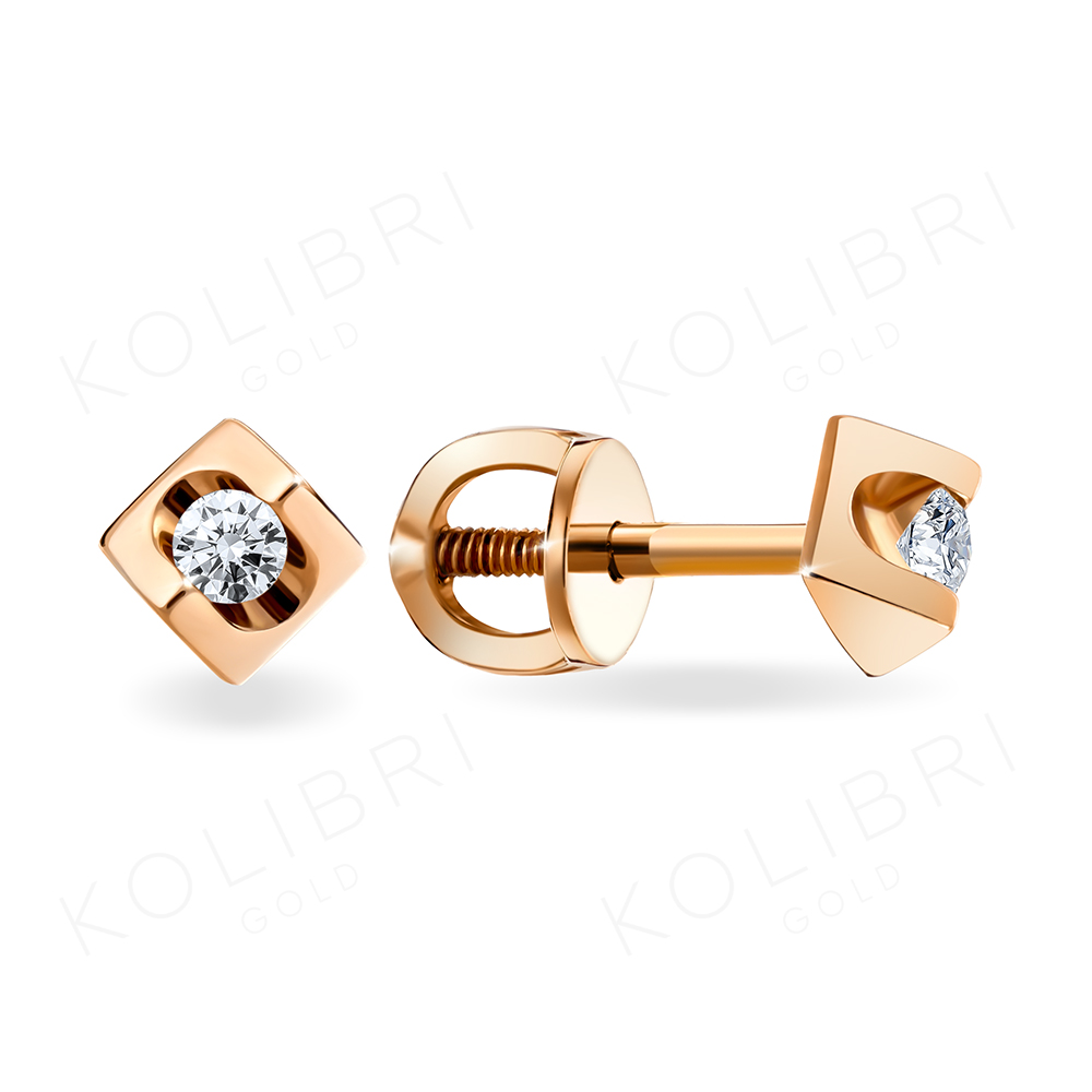 Золотые серьги пусеты-гвоздики с бриллиантом ЕФРЕМОВ С1017097