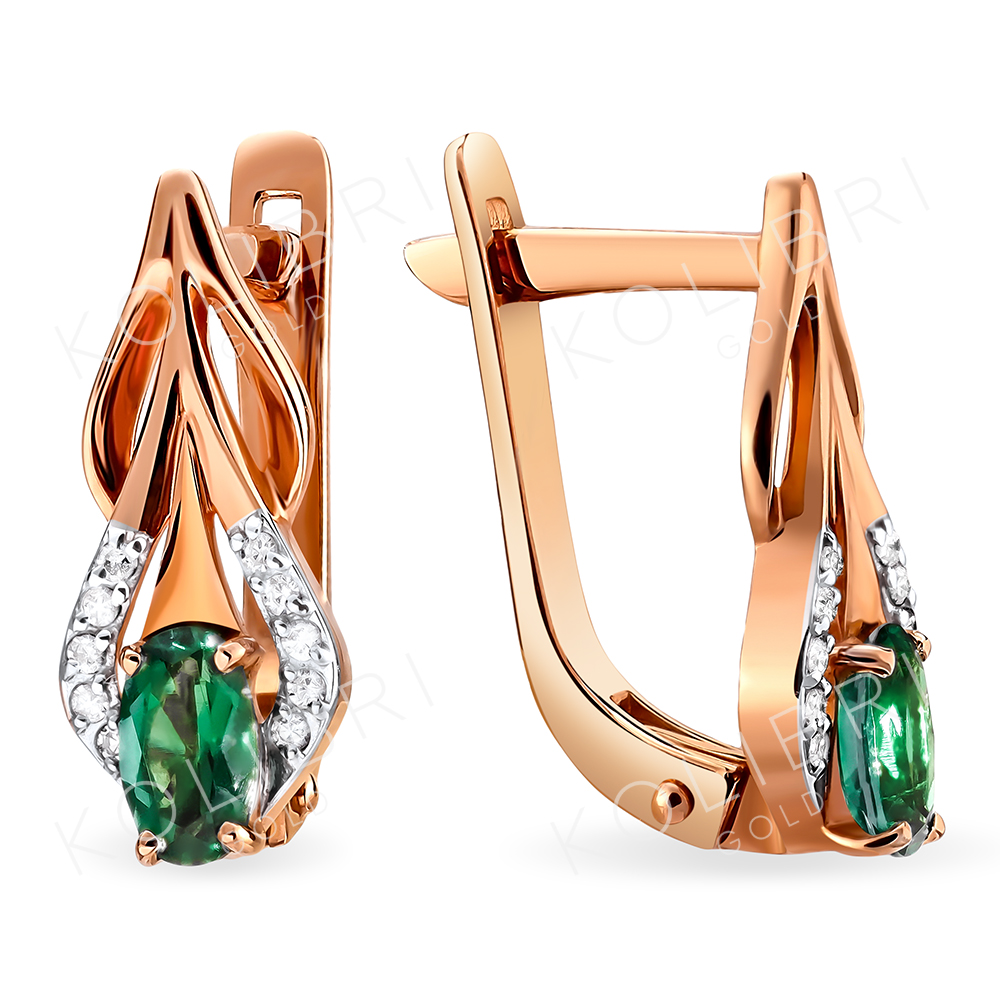 Золотые серьги с бриллиантом и изумрудом гидротермальным ЕФРЕМОВ С13811655