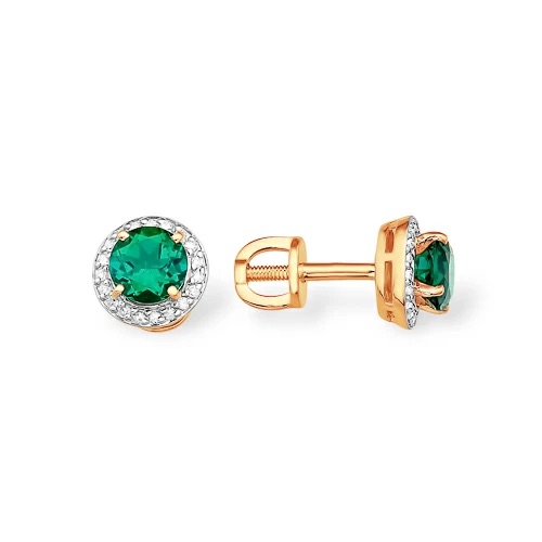 Золотые серьги пусеты-гвоздики с бриллиантом и изумрудом гидротермальным ЕФРЕМОВ С13813830и