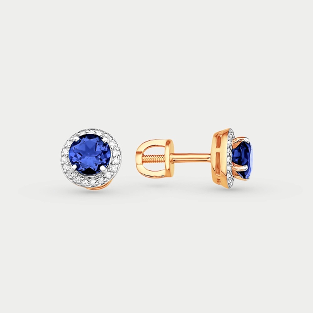 Золотые серьги пусеты-гвоздики с бриллиантом и сапфиром гидротермальным ЕФРЕМОВ С13813830с
