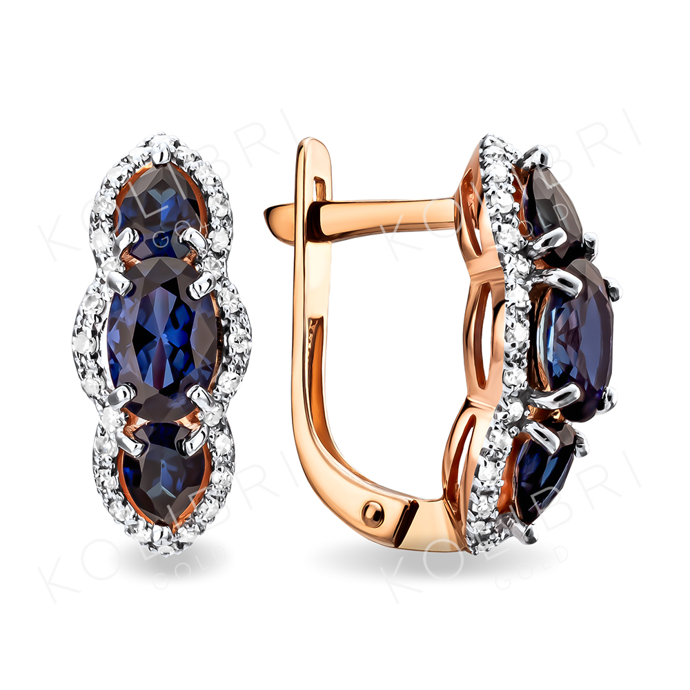 Золотые серьги с бриллиантом и сапфиром гидротермальным ЕФРЕМОВ С1388002