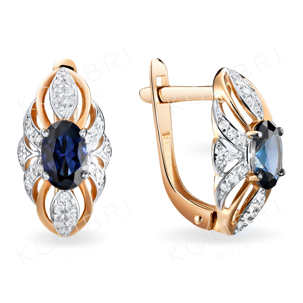 Золотые серьги с бриллиантом и сапфиром гидротермальным ЕФРЕМОВ С1388003с