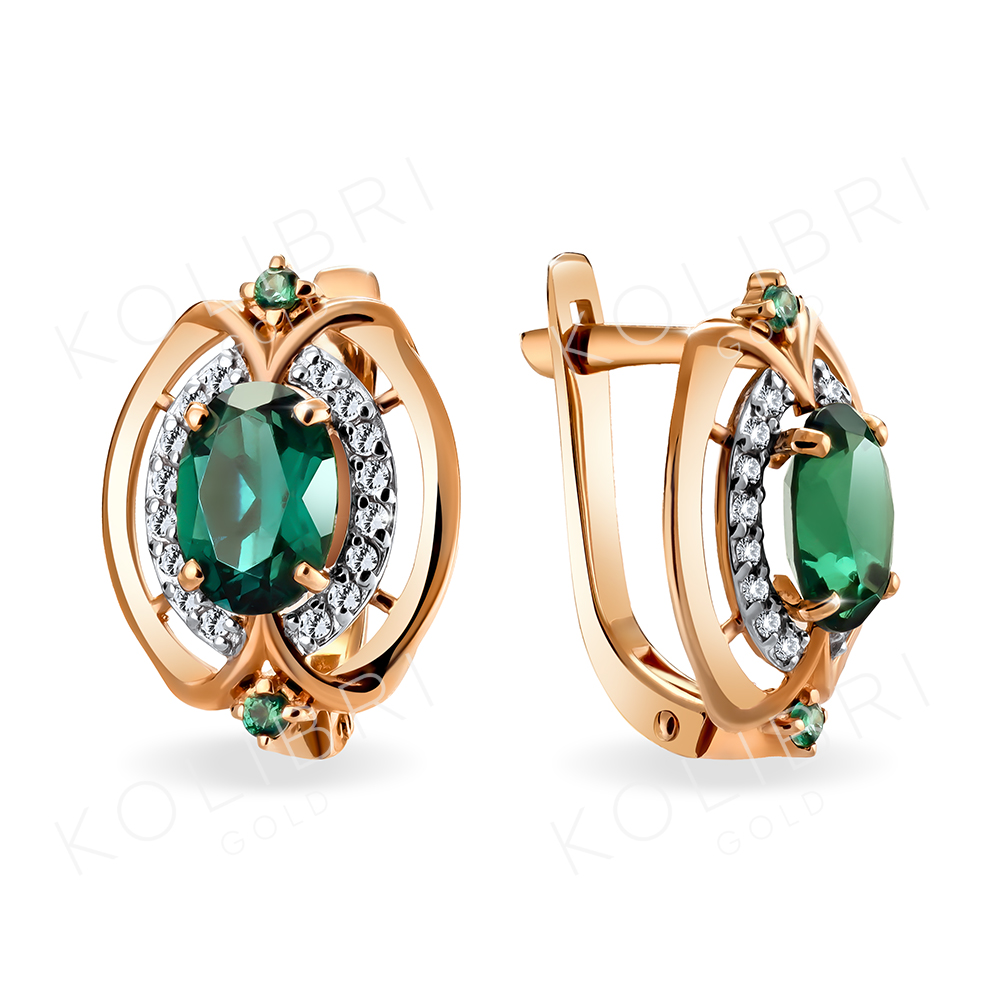 Золотые серьги с бриллиантом и изумрудом гидротермальным ЕФРЕМОВ С1388344
