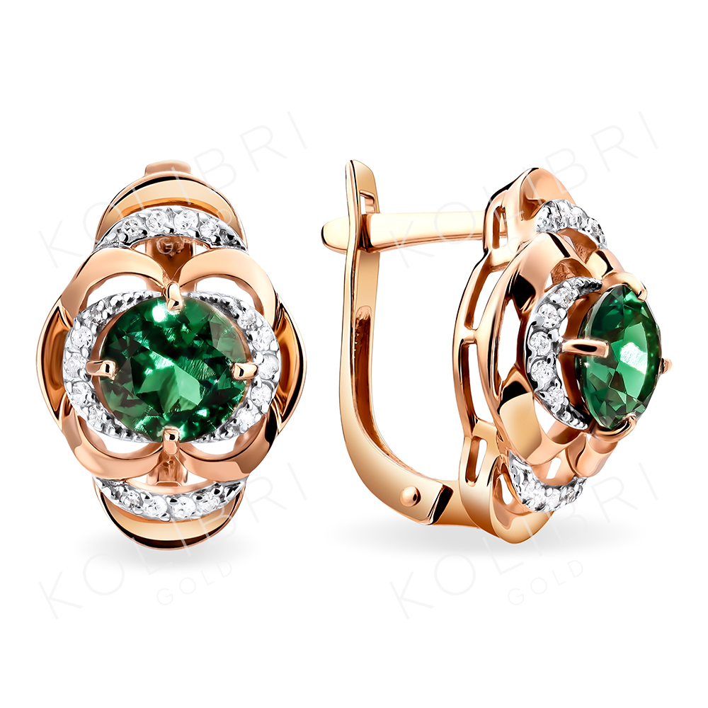 Золотые серьги с бриллиантом и изумрудом гидротермальным ЕФРЕМОВ С1388347