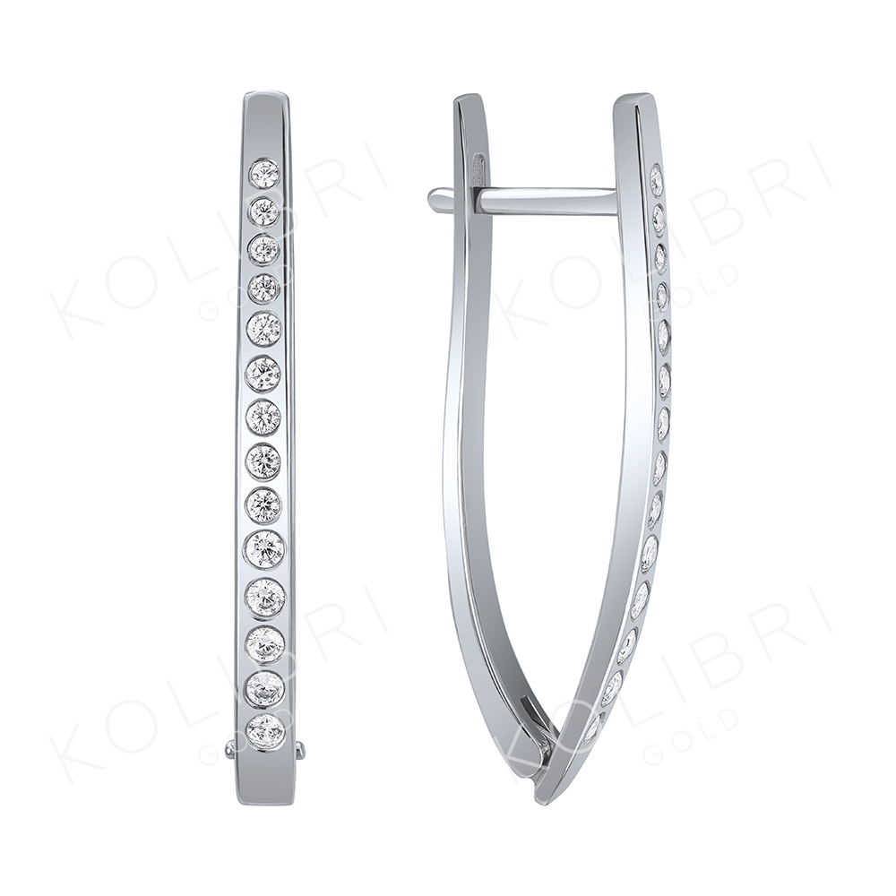 Длинные серьги из белого золота с фианитом СЕНАТ С2153-35