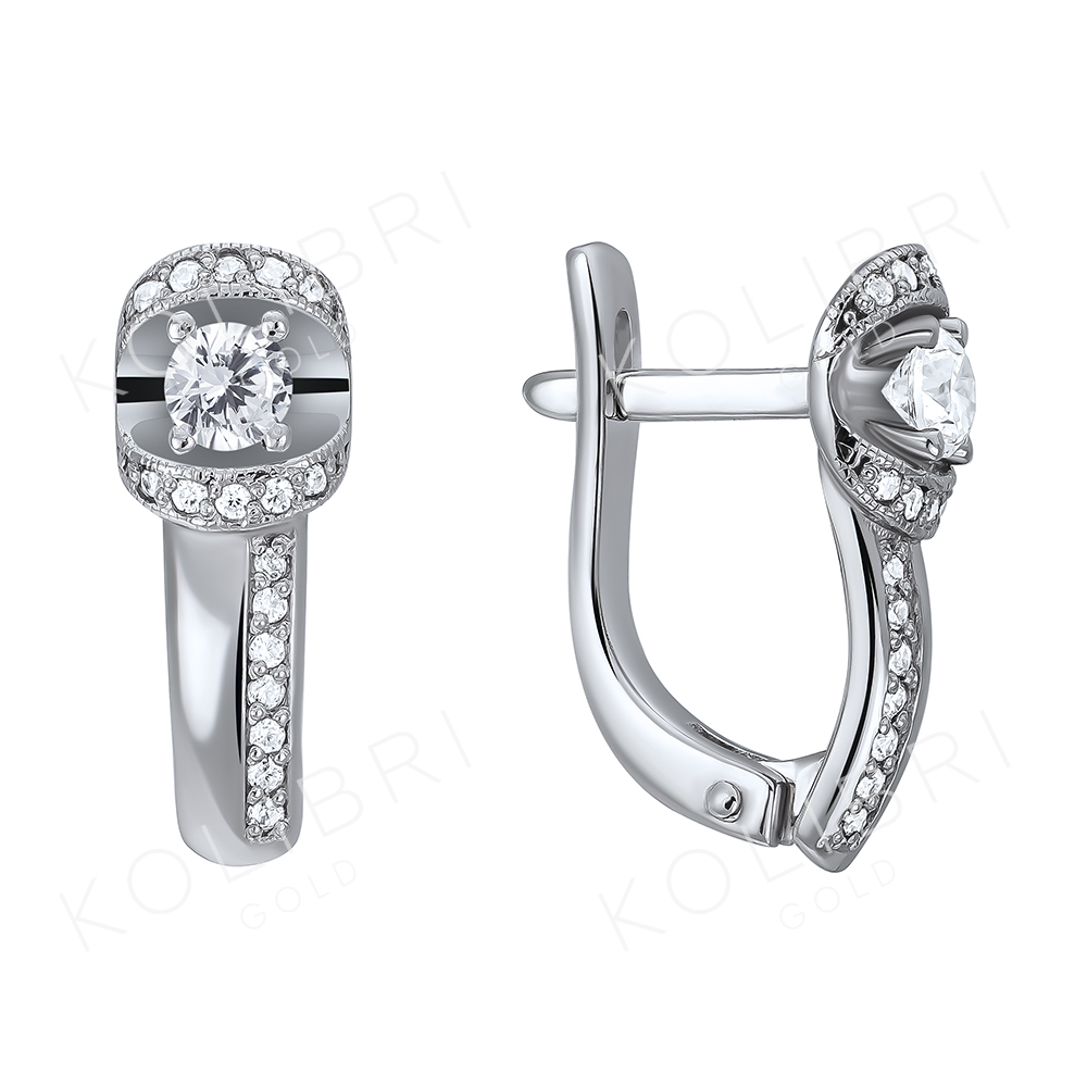 Серьги из белого золота с фианитом СЕНАТ С4123-35