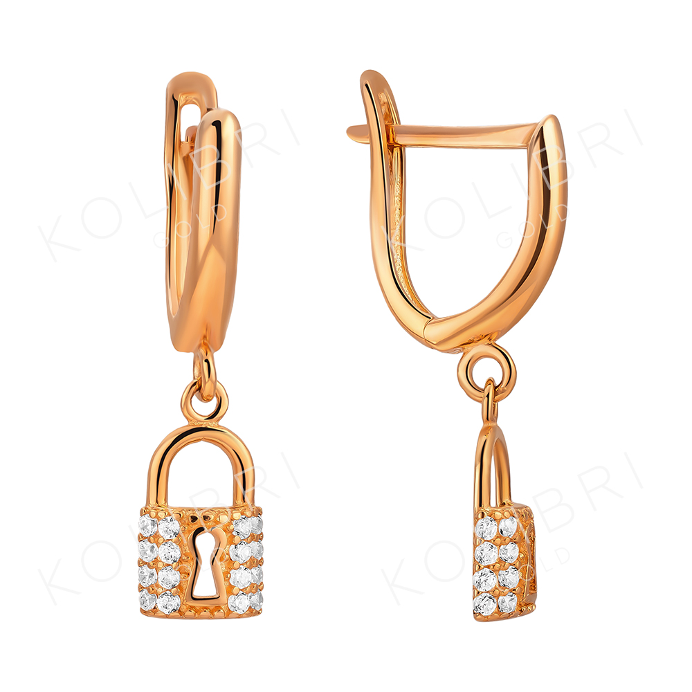 Золотые серьги с фианитом ЗОЛОТАЯ ОРХИДЕЯ С-00-25
