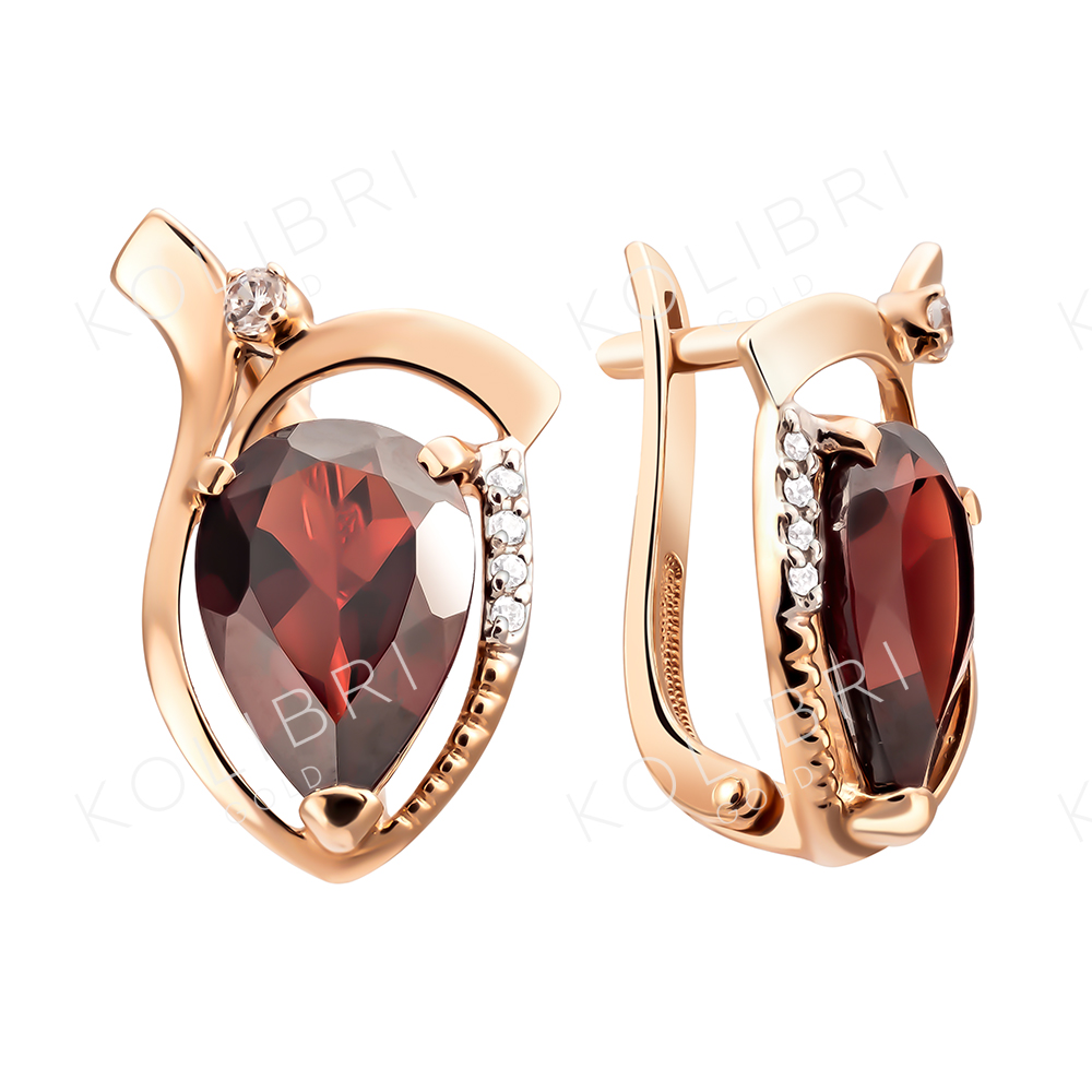 Золотые серьги с гранатом и фианитом ЗОЛОТОЙ КРИСТАЛЛ С-868_НГ