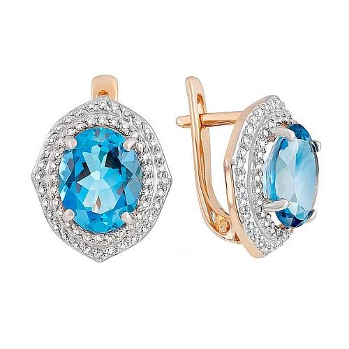 Золотые серьги с топазом и фианитом МАГИЯ ЗОЛОТА СЛ-633К-Т