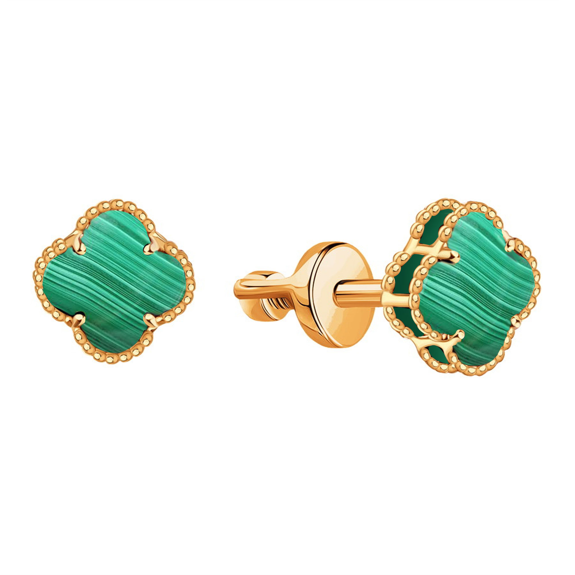 Золотые серьги пусеты-гвоздики с малахитом KARATOV Т10302Г613-03