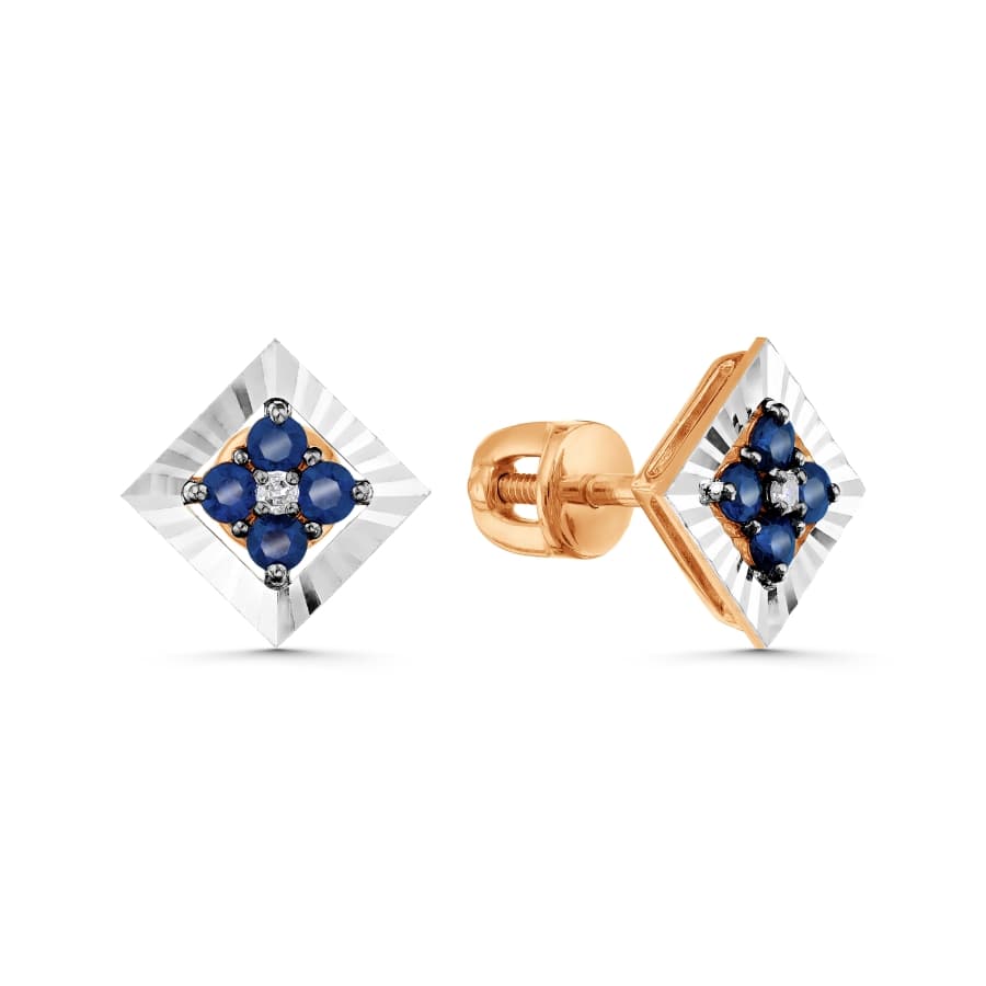 Золотые серьги пусеты-гвоздики с бриллиантом и сапфиром KARATOV Т13162Б264