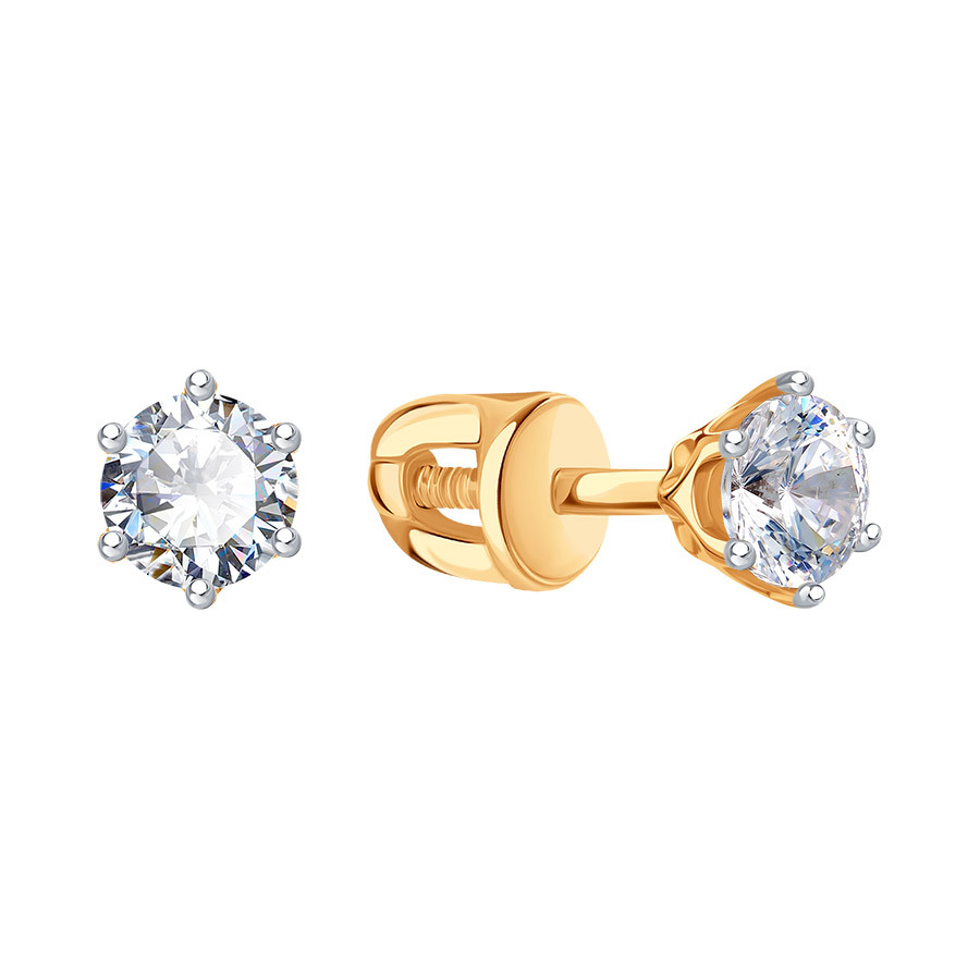 Золотые серьги пусеты-гвоздики с фианитом KARATOV Т142027132